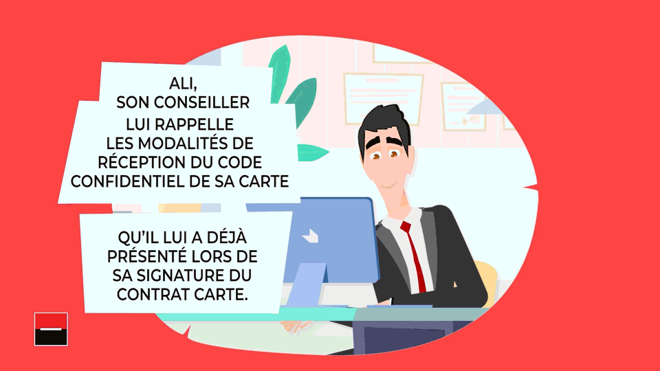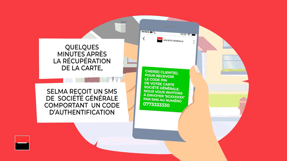 To make the information more relatable, we developed a short narrative centered around Selma, a fictional customer visiting her local bank branch. Upon arrival, she is greeted by a receptionist who kindly walks her through the steps of collecting and activating her card using the SMS code received on her phone.